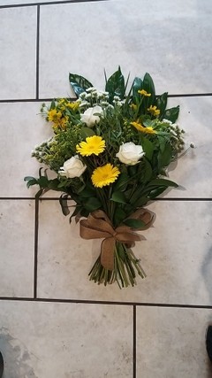 Florist choice yellow and white funeral flowers sheaf made by florist in Croydon, Surrey Bright Sheaf Florist Choice from £35.00