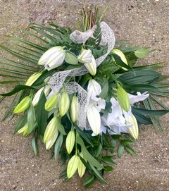 large heads funeral sheaf made of lillies for free delivery in Croydon, Beckenham and Bromley. Lily Sheaf from £45.00