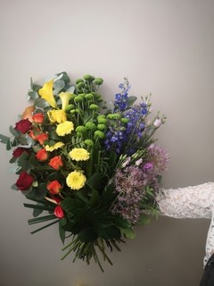 Florist choice of flowers in vibrant shade. Please let us know if you want or not Lilies to be included. by Croydon Blooms Croydon Funeral Florist Vibrant Sheaf from £45.00