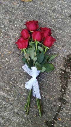Simple Roses funeral sheaf tied with a bow made by florist in Croydon, Surrey, UK Simple Roses Sheaf from £30.00