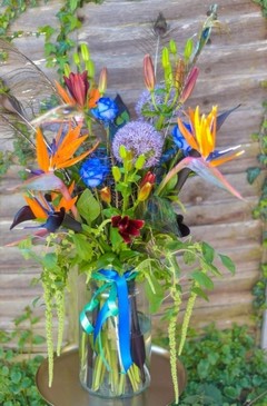 Mixed flowers in a glass vase arranged by local florist in Croydon