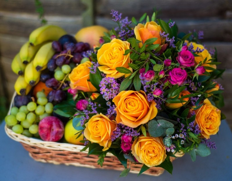 Lovely fruit & flower hamper suitable for birthdays, baby birth, or as an anniversary gift.