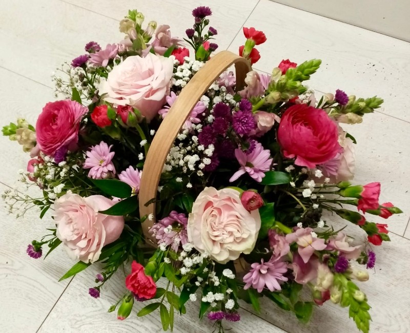 Lovely mix of flowers arranged in the basket.