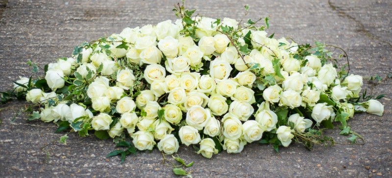 A luxury coffin spray funeral arrangement full of quality roses complemented by seasonal foliage. The colours and variations can be personalised.