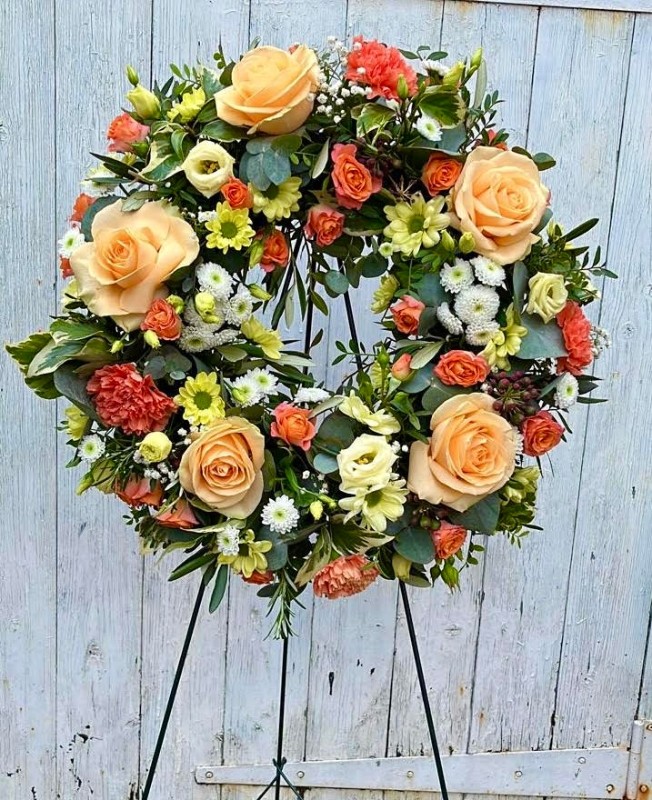 Outstanding peach funeral wreath.
