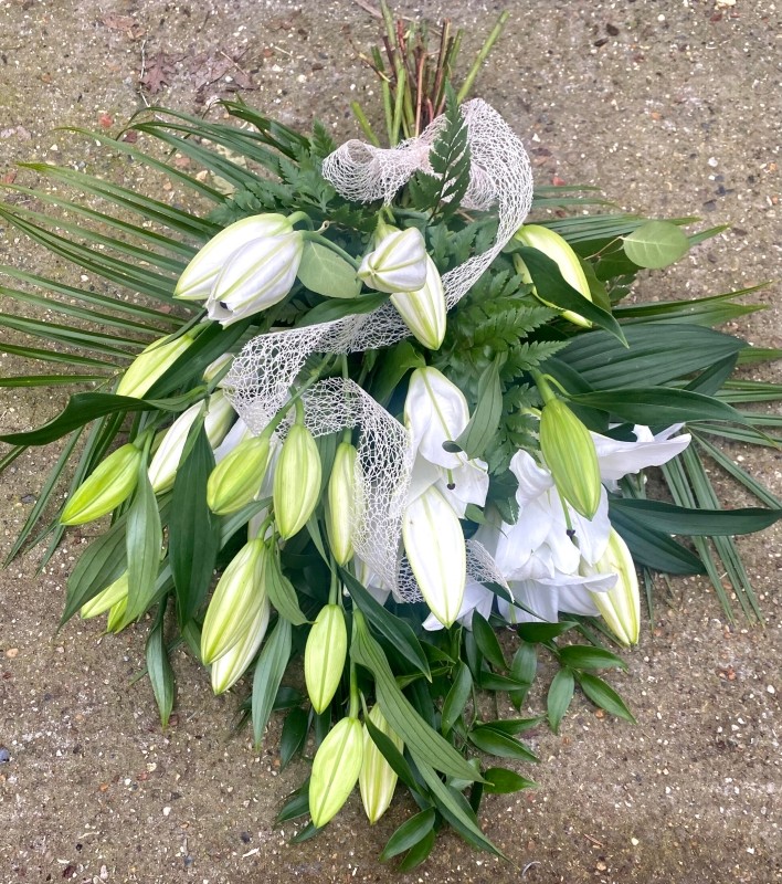 • large heads funeral sheaf made of lillies for free delivery in Croydon, Beckenham and Bromley.