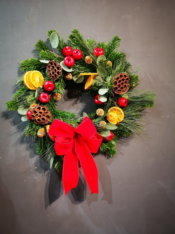 • Traditional Christmas door wreath handmade by florist in Croydon for delivery or collection in CR0 Cr2 CR3 CR4 Cr5 CR7 CR6 CR8 SE25 SM6 SW16