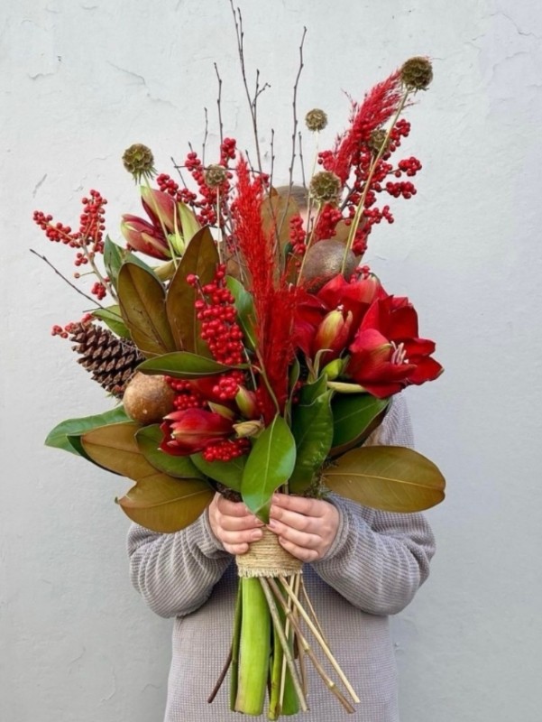 • Christmas fresh berries, Amarylis, eucalypthus and pines wrap of flowers made by florist in Croydon, Surrey, UK for delivery in CR0 CR2 CR3 CR4 CR5 CR6 CR7 CR8 BR4 SE25 SW16