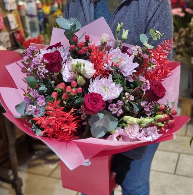 • freestyle fresh flowers bouquet designed by local florist for Valentine's delivery in CR, South London, UK