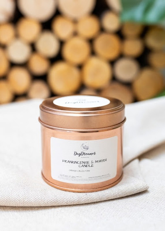 Lovely soy wax scented candle, hand-poured with Frankincense & Myrrh premium fragrance oil.