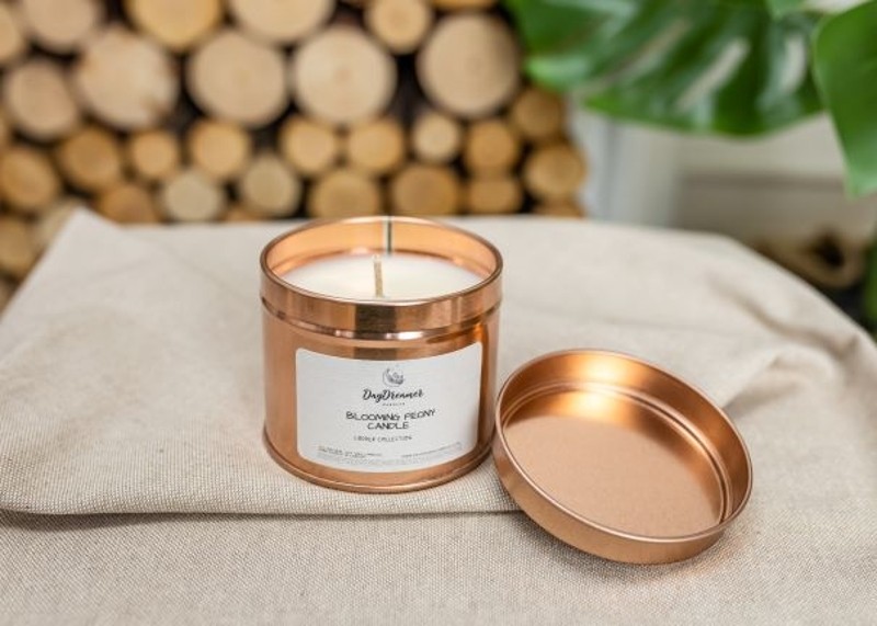 Lovely soy wax scented candle, hand-poured with Peony premium fragrance oil.