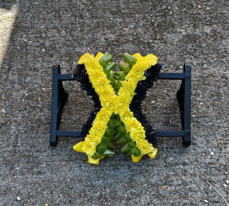 Funeral single letter on the stand. Letter is based and can be personalised.