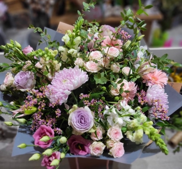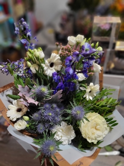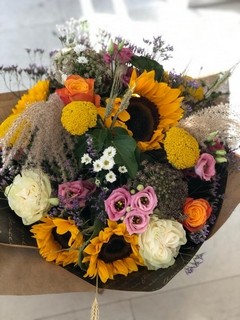 flowers wrap of seasonal flowers wrapped in eco paper by local florist in Croydon