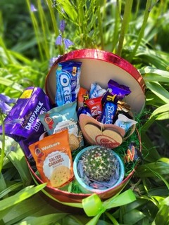 Hat box with sweets and plant, perfect hift for a boy or a teenager for same day delivery in Croydon. Boys Tuck Shop £35.00